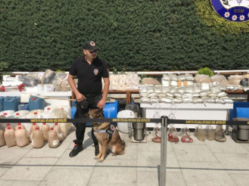 Sakarya'nın Hendek ilçesindeki bir tavuk çiftliğine düzenlenen operasyonda 1 ton 400 kilogram ele geçirildi. Uyuşturucu madde, İstanbul Emniyet Müdürlüğü avlusunda sergilendi.