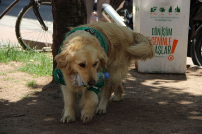 Eskişehir'de barınaktan alınan ve aldığı eğitim sonrasında sokaktan çöp toplamaya başlayan 4,5 yaşındaki Golden cinsi çevreci köpek, görenleri kendisine hayran bırakıyor.