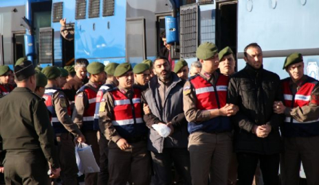 VATANDAŞLAR PROTESTO ETTİ Duruşma öncesi tutuklu 44 sanık, Muğla E Tipi Cezaevinden geniş güvenlik önlemleri altında trafik ekipleri eşliğinde alınarak duruşmanın yapılacağı Muğla Ticaret ve Sanayi Odası'na getirildi. Burada toplanan kalabalık bir grup, sanıkları araçlardan inmesinin ardından protesto etti. Ellerindeki dövizler ile darbecileri protesto eden vatandaşların sloganları arasında sanıklar salonun alt katındaki otoparka yaya olarak geçti. Sanıklar burada araçlardan indirilerek duruşma salonuna alındı. 9'uncu günde duruşma saat 09.30'da başladı. (Bekir Tosun - İbrahim Kılınç/İHA)