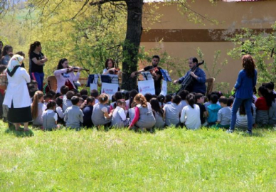 Dağda orkestra kurup köy çocuklarına konser verdiler