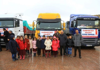 Darendeli hayırsever vatandaşlar Din Görevlileri Derneği'nin başlattığı yardım kampanyasına destek vererek toplanan 5 tır yardımı Halep'e gönderdi.