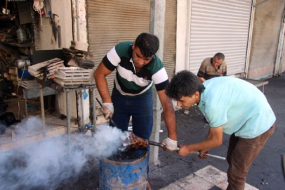 Kilis'te kesilen kurbanların kellelerinin temizliği ve derideki tüylerin ütülmesi demirci ustaları için yeni bir kazanç kapısı olurken, kellenin tanesi 15 TL'den ütüleniyor. Kilis'te kurbanlarını kesen vatandaşlar, kurban kellesinin temizliği için demircilerin yolunu tutuyor. Demir işlemek için yakılan ateşler, bu kez kurbanlık hayvanların kellelerinin temizliği işine yarıyor. Hayvan başına 15 TL alan demirci ustaları, hayvan kellelerini ateşte temizliyor. Kilisli demirci ustalarından Uğur Çiftçi, Kurban Bayramı'nda iş yerlerini kelle ütmek için açtıklarını belirterek, "Yılda sadece Kurban Bayramı'nda bu işi yapıyoruz. Kurbanlarını kesen vatandaşlar kurbanlarının kellelerini ütecek zamanları veya yerleri olmadığı için bize getiriyor. Kor ateşte kelleleri 15 TL karşılığında ütüyoruz. Kellelerin boynuzlarını satırla kırıyoruz. Sonra ütmeye başlıyoruz. Eskiden kadınlar mangal üzerinde kelleleri üterdi" diye konuştu. (Mehmet Ali Dağ/İHA)