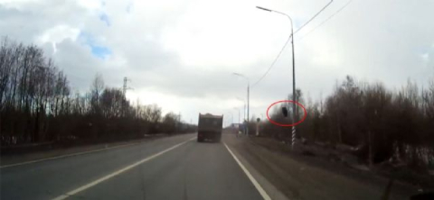 Rusya'da trafikte ilginç bir görüntü yansıdı bir araç kamerasına. Kum yüklü bir kamyonun dev lastiği, bir anda yerinden çıktı ve hoplaya zıplaya yol kenarında ilerlemeye başladı. Durumu fark etmeyen kamyon şoförü yoluna devam ederken, lastik de bir trafik tabelasına çarpıp durdu. Lastiğin o sırada yol kenarındaki anne ve bebeğine çarpmaması, muhtemel bir faciayı önlemiş oldu.