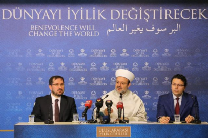 Diyanet İşleri Başkanı Prof. Dr. Mehmet Görmez, Uluslararası İyilik Ödülleri'ne ilişkin olarak, 'Bu iyilik ödüllerini vermeye başlamamızın sebebi, iyilik üzerinde durmamızın sebebi; sadece kötülükle mücadele değil, aynı zamanda iyiliğin karşı karşıya bulunduğu tehlikelerdir' dedi.