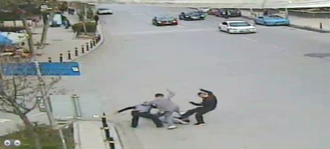 OLAY ANI MOBESE KAMERASINDA Kadıköy'de meydana gelen vahşet, Mobese kameralarına saniye saniye yansıdı. Görüntülerde şüphelilerin apartman görevlisini kovaladıkları görülüyor. Apartman görevlisi şahıslardan kaçarken yere düşüyor. Yere düşen Osman Karabulut'u 3 şahıs ellerinde sopalarla ve tekmelerle döverek darp ediyor. Şahıslardan ikisi bir süre sonra kaçarken, diğer bir şahıs ise bir süre daha vurmaya devam ediyor. Daha sonra şahsın da olay yerinden hızla kaçtığı görülüyor. (Mustafa Esen/İHA)