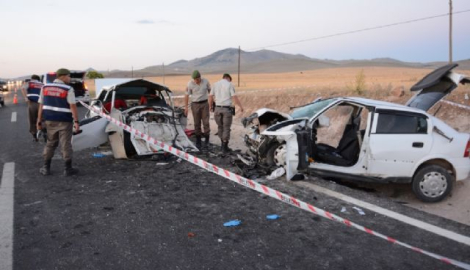 Aksaray'da düğün konvoyunda iki otomobilin kafa kafaya çarpışması sonucu meydana gelen trafik kazasında 3 kişi öldü, 3 kişi yaralandı.