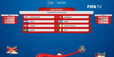 Rusya'nın ev sahipliği yapacağı 2018 Dünya Kupası Avrupa Elemeleri Play-off eşleşmeleri belli oldu. Dünya Kupası'na, Avrupa kıtasından katılacak son 4 takımın belirleneceği kuraya, gruplarını 2. sırada bitiren İsviçre, İtalya, Hırvatistan, Danimarka, Kuzey İrlanda, İsveç, İrlanda ve Yunanistan katıldı. Kura çekimi sonrası oluşan eşleşmeler şöyle: