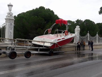 Antalya'nın Kundu bölgesinde bir tekne, Azeri iş adamı tarafından 1,4 milyar dolara yaptırılan Mardan Palace Otel'in demir parmaklıklarının üzerine oturdu. Kundu'da Azeri iş adamı Telman İsmailov tarafından 1,4 milyar dolara yaptırılan ve bu yıl yaşadığı mali sıkıntılar yüzünden bir türlü gündemden düşmeyen Mardan Palace Otel'i bu sefer de bir kaza ile gündeme geldi. Bölgede su sporlarında kullanılan bir tekne, taşıma işlemi yapıldığı sırada kızağından kaydı. Tekne, otelin daha önce çalınan demir parmaklıklarının duvarının üzerine oturdu. Kazada ölen ya da yaralanan olmazken teknede maddi hasar meydana geldi. Bir süre olay yerinde kalan tekne daha sonra vinç yardımıyla çekilerek bakıma götürüldü.