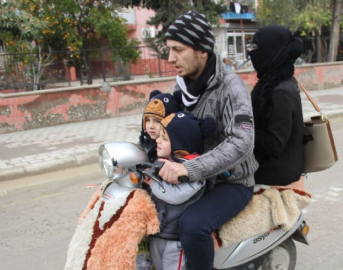 Seyhan ilçesi Bakımyurdu Caddesi'nde, Suriyeli ailenin elektrikli bisiklette tehlikeli bir şekilde seyir etmesi herkesi hayrete düşürdü. Babanın kullandığı elektrikli bisiklete sürücü ile birlikte iki kişi binmesi gerekirken, anne ve 2 çocuğun daha binmesi dikkat çekti. Çocukların babanın önündeki boşlukta ayakta gitmesi her an düşme tehlikesi oluşturdu. Ancak buna rağmen baba tehlikeye aldırmadan yoluna devam etti. Çocukların güçlükle ayakta durması ise yüzlerine yansıdı.