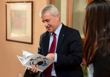Engelliler Entegre Yüksekokulu Grafik Bölümü öğrencilerinin dersleri kapsamında hazırlamış oldukları özel tasarımlı ajandaları kendilerine hediye ettiklerini söyleyen Anadolu Üniversitesi Rektörü Prof. Dr. Naci Gündoğan, "Bu bizim için gerçekten çok değerli bir armağan oldu. Öğrencilerin kendi el emekleri ile bana ve Rektör Yardımcılarımıza özel olarak bir ajanda tasarlamaları ve bunu sunmaları bizi çok mutlu etti. Kendilerine teşekkürlerimizi ilettik ve başarılar diledik." şeklinde konuştu.
