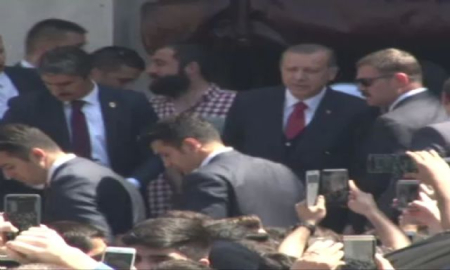 Cumhurbaşkanı Recep Tayyip Erdoğan, cuma namazını kılmak için Dolmabahçe'de bulunan Bezmialem Valide Sultan Camii'ne geldi. Cumhurbaşkanı Erdoğan'a Gine Cumhurbaşkanı Alpha Conde, İstanbul Valisi Vasip Şahin, İstanbul Emniyet Müdürü Mustafa Çalışkan, Enerji ve Tabii Kaynaklar Bakanı Berat Albayrak, Bilal Erdoğan, İstanbul Büyükşehir Belediye Başkanı Kadir Topbaş ve Beşiktaş Kulübü Başkanı Fikret Orman eşlik etti. Caminin çevresinde polis ekiplerince yoğun güvenlik önlemi alındığı görüldü. Cumhurbaşkanı Erdoğan, cuma namazının ardından resmi temaslarda bulunmak üzere Mabeyn Köşkü'ne geçti.