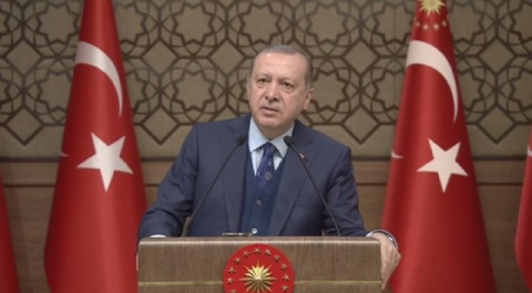 "FAHRETTİN PAŞA'YI HEDEF ALMALARI BOŞUNA DEĞİLDİR" Kudüs'ün tarihin her döneminde olduğu gibi bugün de hem Müslümanların kendi aralarındaki hem dünyadaki vicdanlar için adeta bir ölçü vazifesi gördüğünü söyleyen Erdoğan, "Dün Kudüs'ü işgal etmek için İstanbul'dan Anadolu'ya 600 bin kişi ile geçen Haçlı ordularını Toroslara kadar 60 bin kişiye indiren bir millet, biz de bu vicdan terazisinde şuanda tartılıyoruz. Ecdadımız bin yıl boyunca Kudüs'ü ve İslam coğrafyasını korumuştu. Birinci Dünya Savaşı bu büyük imtihanla bir kez daha yüzleşmemizin, Kurtuluş Savaşımız ise diriliş ruhu ile önümüzde yeni bir dönem açışımızın adıdır. Millet olarak Birinci dünya Savaşını daha ziyade kayıplarımızla, en fazla Çanakkale'deki büyük zaferimizle biliriz. Halbuki, Birinci Dünya Savaşı'nın üzerinde hala yeteri kadar çalışılmamış pek çok destanı vardır. Bunlardan birisi mağrur İngiliz kuvvetlerinin Kut'ül Amare'de bölgedeki en büyük hezimetlerinden birisine uğratılmış olmasıdır. Üzerinde önemle durulması gereken bir başka hadise, sırf düşman topları ile tahrip edilmesi ile Kudüs'ten dönülmüş olmasıdır. Bir diğer önemli husus Osmanlı'nın aynı anda pek çok cephede savaştığı dönemde Kafkas İslam Ordusu ile Azerbaycanlı kardeşlerimizin yardımına koşmamızdır. Bugünlerde birilerinin büyük bühtanı ile hatırladığımız bir başka destanımız da bizim Medine müdafaasıdır. Bölgemizde ve dünyada Müslümanların çok ciddi baskı. Zulüm ve saldırı altında olduğu bir dönemde zalimlerin safında yer almayı maharet sananların Medine müdafaası ve onun büyük kahramanı Fahrettin Paşa'yı hedef almaları boşuna değildir. Çünkü Medine müdafaası İslam'ın ve onun büyük Peygamberi Efendimiz Muhammed Mustafa'nın sembollerinin, adının şartlar ne olursa olsun nasıl korunması gerektiğini gösteren ibretlik bir hadisedir" şeklinde konuştu.