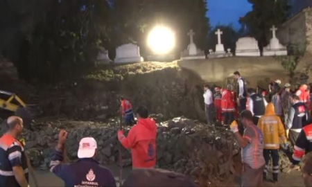Ermeni Mezarlığı'nın duvarı çöktü: 2 kişi göçük altında kaldı