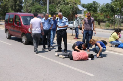 KÜÇÜK KIZ NE OLDUĞUNU ANLAMAYA ÇALIŞTI Çarpmanın etkisiyle Murat İ. yere düştü. Araçtan inen sivil polisler yaralıya yardıma koşarken, durumu 112 Acil Sağlık ekiplerine bildirdi. Murat İ.'nin eşi küçük kızı ile birlikte şoke oldu. Genç anne hemen yanı başında yatan eşinin durumunu telefonla yakınlarına bildirirken, küçük kız ise etrafa bakınmaya başladı. Anne ilk başta küçük kıza, yerde yatan babasını göstermezken daha sonra kızını da alıp eşinin başına gitti. Yerde yatan babasına ne olduğuna bakan küçük kız çevredekilerin uyarısı ile babasının başından uzaklaştırıldı. İhbar üzerine gelen sağlık ekipleri, olay yerinde yaptığı ilk müdahalenin ardından Murat İ.'yi ambulans ile Ege Üniversitesi Hastanesine kaldırıldı. Burada tedavi altına alınan Murat i.'nin durumunun iyi olduğu öğrenildi. Kazayla ilgili soruşturma başlatıldı. (Abdülaziz Baydilli - Atakan Şen /İHA)