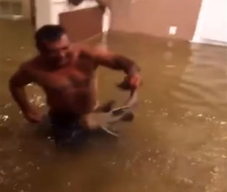 ABD'nin Teksas eyaletine bağlı Houston şehri Harvey kasırgasıyla boğuşurken, ortaya ilginç görüntüler de çıkıyor. Tıpkı evini su basan bu adamın balık avı gibi. Evine gelen davetsiz konuğu uzun süre kovalayan adam, en sonunda onu tutmayı başarıyor. Başta oluşan şaşkınlıksa yerini kahkahalara bırakıyor.