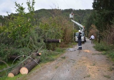 Fırtına elektrik telleri koparıp ağaçları devirdi