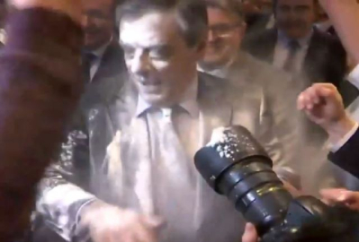 Cumhuriyetliler (LR) Partisi adayı Sağcı François Fillon, Strasburg mitingine giderken halk ile selamlaştığı sırada bir kişinin unlu saldırısına uğradı. Üzerinde 'Öğrenciler Fillon ile beraber' yazılı tişört giymiş bir genç 'Lobici' diye bağırarak Fillon'un üzerine un döktü. Protestocu korumalar tarafından etkisiz hale getirildi.