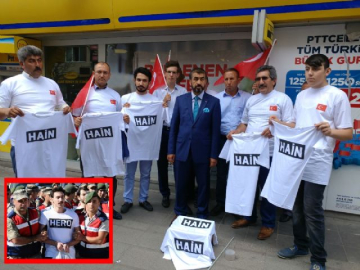 Muğla'da FETÖ'nün 'suikast timi'nde yer alan bir darbecinin 'Hero'(Kahraman) yazılı tişörtle duruşmaya katılmasına tepki gösteren 15 Temmuz Gazileri Platformu, tişörtlerin üzerine 'Hain' yazarak, cezaevleri müdürlüğüne gönderdi. Cumhurbaşkanı Recep Tayyip Erdoğan'ın Marmaris'te kaldığı otele, 15 Temmuz darbe girişimi gecesi saldırı düzenleyen 1'i firari 37 darbeci askerin aralarında bulunduğu 44'ü tutuklu 47 kişinin Muğla 2'nci Ağır Ceza Mahkemesinde yargılanması sırasında dünkü duruşmaya Sanık askerlerden Astsubay Gökhan Güçlü 'Hero' (Kahraman) yazılı tişörtle katılmıştı. 15 Temmuz Gazileri Platformu da yaşanan olaya tepki göstermek amacıyla üzerinde 'HAİN' yazan tişörtler bastırdı. Platform Başkanı Erol Bulut ve gaziler bastırdıkları tişörtleri Sefaköy PTT Şubesinden Muğla E Tipi Kapalı Cezaevi yönetimine, darbeci hainlerin duruşmaya giderken giymeleri için gönderdi. Cezaevi yönetimlerine seslenen Başkan Erol Bulut," darbecileri karşımıza kahraman olarak değil, hain olarak çıkartın" diye uyarılarda bulundu.