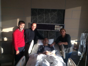 Aşil tendonu yırtılan Yardımcı Antrenör Dünya Can Çiçekverdi'yi ailesi ve Konyaspor Teknik Direktörü Mehmet Özdilek ve hastanede ziyaret etti.