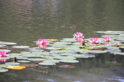 Göl üzerindeki nilüferler görenleri hayran bıraktı