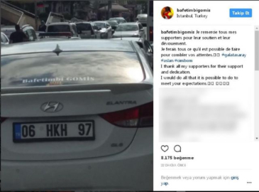Galatasaray'a İngiltere'nin Swansea City takımından transfer olan Fransız futbolcu Bafetimbi Gomis, sosyal medyada sarı-kırmızılı taraftarlarla konuşmaktan çekinmiyor. Kendisine atılan mesajlara cevap veren Gomis, son olarak bir taraftarın arabasının arka camına yazdırdığı yazıyı, sosyal medya hesabından paylaştı. Yıldız futbolcu, arkasında 'Bafetimbi Gomis' yazan arabanın fotoğrafını paylaşarak, şu notu ekledi: