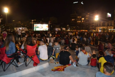 Antalya'da Göztepe ile Eskişehirspor arasında oynanan Süper Lig'e yükseliş maçı için İzmir'de nefesler tutuldu. Antalya'ya gidemeyen birçok Göztepe taraftarı, takımının temsil eden sarı-kırmızı bayraklarla birlikte kentin birçok noktasına kurulan dev ekranlara akın etti. Göztepe'yi yalnız bırakmayan İzmirli taraftarlar, tezahüratlar eşliğinde Göztepe ile Eskişehirspor'un arasındaki kıran kırana süren mücadeleyi saniye saniye dev ekranlardan takip etti. 7'den 70'e birçok taraftarın geldiği dev ekranların çevresinde, İzmir İl Emniyet Müdürlüğü'ne bağlı ekipler güvenlik önlemi aldı. Öte yandan Göztepe'nin 14 yıllık Süper Lig hasretinin son bulmasını bekleyen taraftarlar, İzmir'den Göztepe'yi desteklemeye devam ediyor.