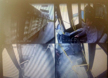 Çorum'da geçtiğimiz günlerde halk otobüsü ile tırın çarpışması sonucu meydana gelen ve 8 kişinin yaralandığı trafik kazası, araç kamerası tarafından saniye saniye görüntülendi. Kaza, 21 Nisan tarihine Organize Sanayi Bölgesinde meydana gelmişti. Edinilen bilgilere göre, Serdar S. yönetimindeki 19 TN 459 plakalı halk otobüsü, Organize Sanayi Kavşağında bir tır ile çarpıştı. Çarpışmanın etkisiyle kontrolden çıkan otobüs refüje çıkmış kazada 8 kişi yaralanmıştı. O kaza anı otobüs içerisindeki araç kameraları tarafından saniye saniye kaydedildi. Görüntülerde, organize sanayi bölgesinden yolcularını alan halk otobüsü Çorum-Ankara yolu Organize Sanayi Kavşağına çıktığı sırada tırla çarpışıyor. Çarpmanın şiddeti ile otobüsün ön camı sürücünün suratına patlıyor. Kaza sonrası kaçan tır sürücüsünün jandarma ekiplerinin yaptığı çalışmalar sonrası Konya'da yakalandığı öğrenildi. (M. Muttalip Yalçın / İHA)