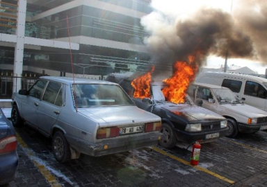 Hastane otoparkında yangın paniği