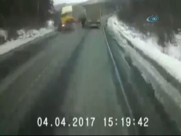 Hatalı sollama yapan şahıs bu kazada canından oldu. Rusya'da bir otomobil sürücüsü, önündeki kamyonu hatalı sollayınca kaza da geliyorum dedi. Otomobil karşı yönden gelen tırla kafa kafaya çarpıştı. Tırın biçtiği araçtaki iki kişi hayatını kaybederken, korkunç kaza kameraya yansıdı.
