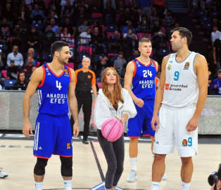 THY Euroleague karşılaşması olan Anadolu Efes - Real Madrid mücadelesinde meme kanserinde erken tanı farkındalığı oluşturmak için pembe top ile hava atışı yapıldı.