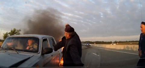Rusya'da meydana gelen trafik kazasının ardından araçlardan biri yanmaya başladı. Her iki aracın içerisinde de sıkışanların yardımına çevrede bulunanlar koştu. Olaya şahit olan bir adam ise önce yanan araca ait kapıyı zorlayarak açmaya çalıştı, bunu başaramayınca tekmeyle camı kırarak sürücünün hayatını kurtardı. Bununla da kalmayan adam bu kez kazaya karışan diğer araçtaki sürücünün de imdadına yetişti. İnsanların gayreti sayesinde facianın önüne geçilirken, o anlar görüntüye saniye saniye yansıdı.