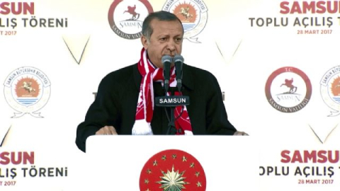 Cumhurbaşkanı Recep Tayyip Erdoğan, Samsun'da Toplu Açılış Töreninde halka hitap etti. Meydanı dolduran 10 binlere hitap eden Cumhurbaşkanı Recep Tayyip Erdoğan, "İstiklal harbimizin müjdecisi Samsun. İnşallah ülkemizin yeni döneminin de öncüsü olacaktır. Türkiye 16 Nisan'da yeni yönetime geçme kararı vereceği dönemde Samsun'a yine büyük görevler düşüyor. Samsun'a yüzde 66 yetmez. Öncü olmak öyle kolay değil. 16 Nisan'da çok daha yüksek bir oranda evet bekliyorum. Samsun aynı zamanda bir şehitler diyarı. Son 1,5 yılda 15 şehidi var. Fırat kalkanında 3 şehit verdi. Samsun'un 15 Temmuz darbe girişiminde de 3 şehidi bulunuyor. Tüm şehitlerimize Allah'tan rahmet diliyorum" diye konuştu.