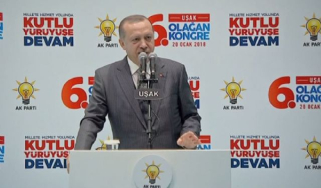 Uşak'a AK Parti döneminde yapılan yatırımlara da değinen Erdoğan, "AK Parti zamanında Uşak her açıdan büyüdü ve kalkındı. Uşak hayata geçirdiğimiz projelerle Ege Bölgesi'nin tarım, sanayi ve ticaret merkezine dönüştü. Bugüne kadar Uşak'a toplam 6 buçuk milyar tutarında yaptırım yaptık. Yani 6 buçuk katrilyon. Bin 186 yeni derslik inşa ettik. Bugün fakülteleri ve eğitim alanıyla yeni bir üniversiteyi kazandırdık. Yahu Uşak'ta üniversite yoktu be. Bizden önce Uşak'ta sağlıkta ciddi sıkıntılar yaşanıyordu. Ah ah bu medeniyiz ve çevreciyiz diyenler dereyi görmüyorlar mıydı? Ne yaptılar bir şey yaptılar mı? Peki bu tabakhane deresini şimdi görüyorsunuz ne oldu? DSİ'ye burada teşekkür ediyorum. Bak Veysel hoca biz teşekkürü biliriz. Sağolsun TOKİ'de bu projeyi oradaki bu binaları dönüştürdü. Şimdi yan taraftaki kısmı da dönüşüme tabi tutacağız. Uşak'a çirkinlik yakışmıyor. Burası bir kültür ve medeniyet kenti. 2002'ya kadar 31 kilometre bölünmüş yol vardı şimdi bizimle beraber bu rakam 171 kilometreye çıktı. Kılıçdaroğlu şoförler benimle zannediyordu. Kılıçdaroğlu şoförler benimle zannediyordu. Yolların halini de kamyon şoförlerine sorun diyordu. Yahu eline dizine dursun, her şeyi de bari bu yollarla ilgili bunu söyleme. Biz 1 milyon taşerona kadrolarını verdik. Şimdi kenarda köşede 300, 500 ve bin kalmışsa, yahu kardeşim takip edersiniz ve hakkınızı alırsınız. 1 milyon kişiye bu hakkı veren bin kişiye mi vermesin. Gaz verelim diye bizi de gaza getirmeyin. Belediyedeki taşeronlar kurumun iktisadi teşekkülü altında kadro alacak ve çalışacak. Biz öyle ne aldanan ne de aldatan olacağız. Demir yollarının hali içler acısıydı ve Uşak'a yeni hatlar kazandırdık ve lojistik merkez inşa ettik. Ankara'yı Uşak arasından İzmir'e hızlı trenle bağlıyoruz. Hızlı tren hattını Eylül 2019'da hizmete açıyoruz. Ayrıca Uşak'a bir hızlı yüksek tren garı inşa edeceğiz. Biz ne dedik havayolu halkın yolu olacak dedik ve bunu yaptık mı yaptık. Vatandaşım otobüs fiyatına uçakla seyahat edecek. Banaz Küçükler Barajı'ndan aldığımız suyu Uşak'a getirdik. Uşak OSB için Kocadere ve Uzundere Barajı üretim hatlarını inşa ediyoruz. Şimdiye kadar 39 adet sulama tesisini bitirdik. Uşak'a 725 milyon TL tutarında tarımsal destek verdik. Yaptığımız bu yatırımlar ve verdiğimiz destekler sayesinde Uşak bölgenin parlayan yıldızı oldu" dedi.