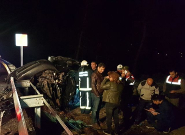 Antalya'nın Manavgat ilçesinde birbirine çarpan iki araç hurdaya döndü. Korkunç kazada 1 kişi hayatını kaybetti, 1'i ağır 2 kişi yaralandı. Edinilen bilgiye göre, Manavgat-Konya D-695 karayolu Ahmetler Mahallesi yol kavşağında Hüseyin Metin yönetimindeki 07 RM 182 plakalı otomobil ile Uğur Bolat'ın kullandığı 24 EN 706 plakalı otomobil çarpıştı. Her iki aracın da hurdaya döndüğü kazada Uğur Bolat'ın kullandığı otomobil yolun ortasında kalırken Hüseyin Metin'in kullandığı otomobil çarpışmanın etkisiyle yoldan çıkıp çelik bariyerleri aştı. Kazada bariyerleri aşan otomobilin sürücüsü Hüseyin Metin sıkıştığı araç içinde hayatını kaybetti. Metin'in cenazesi Antalya Büyükşehir belediyesi itfaiyesi kurtarıcı ekibinin uzun süren çalışmasının ardından çıkarıldı. Hüseyin Metin'in kullandığı araçta bulunan ve yaralanan Fatma Bedel ile diğer otomobilin sürücüsü Uğur Bolat ambulans ile Manavgat Devlet Hastanesine kaldırıldı. Ağır yaralanan Fatma Bedel'in yoğun bakım ünitesinde tedavisi devam ediyor. Kazada yaşamını yitiren Hüseyin Metin'in cenazesi Cumhuriyet Savcısının olay yerindeki incelemelerinin ardından önce Manavgat Devlet Hastanesi morguna ardından da Antalya Adli Tıp Kurumuna gönderildi. (Arif Kaplan/İHA)