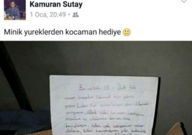 Denizli'de yaşayan ve sözleşmeli komando olarak görev yapan Kamuran Sutay, kendisine gelen paketi mektupla beraber fotoğraf çekerek sosyal medyada paylaştı.