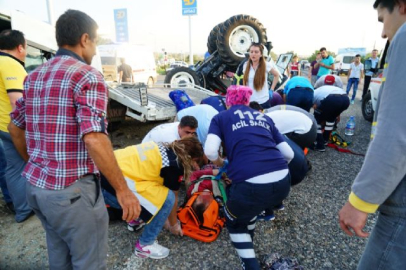 İşçi minibüsü ile traktör yüklü çekici çarpıştı: 7 yaralı