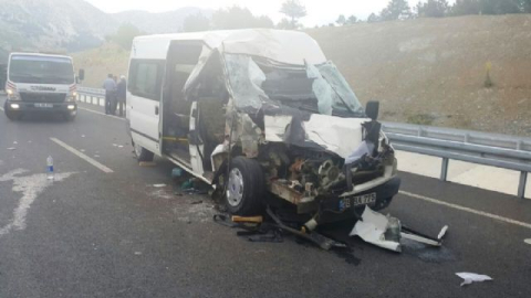 İşçi minibüsü tıra arkadan çarptı: 2'si bebek 18 yaralı