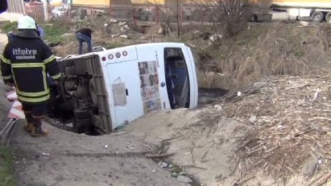 Tekirdağ'ın Ergene ilçesinde yoldan çıkan servis minibüsünün dereye uçması sonucu meydana gelen kazada, araçta bulunan 12 işçi ile sürücü yaralandı. Edinilen bilgilere göre kaza, Ergene ilçesinin Ulaş Mahallesi mevkiinde meydana geldi. Ergene yönünden Edirne yönüne gitmekte olan ve bir fabrikanın 16.00- 00.00 vardiyası işçilerini taşıyan Nihat H. yönetimindeki 59 S 6227 plakalı servis minibüsü, sürücüsünün direksiyon hakimiyetini kaybetmesi sonucu kontrolden çıktı ve yol kenarındaki dereye uçtu. Dere köprüsünün beton bloklarına da çarpan minibüsün sürücüsü Nihat H. ile serviste bulunan işçilerden Eyüp K., Seyhan U., Olcay Ö., Şükrü E., Erdal O., Mehmet G., Mahir Ö. Çetin Y., Tarık T., Okay G. ve ismi öğrenilemeyen 2 işçi yaralandı. Yaralılar olay yerine sevk edilen ambulanslarla Çorlu Devlet Hastanesi Acil Servisine kaldırılarak tedavi altına alındı. Kimlik bilgileri henüz tespit edilemeyen 2 yaralı de ilçedeki bir özel hastaneye kaldırılarak tedavi altına alındı. Tekirdağ İtfaiyesi Kaza Kırım ekipleri ile dalgıç ekipleri de servis minibüsünün dereye uçtuğu kaza nedeniyle her ihtimale karşı olay yerine sevk edildi. Kazanın yaşandığı yerde jandarma ve bölge trafik ekipleri de inceleme yaptılar. Kazayla ilgili olarak başlatılan soruşturma sürdürülüyor. (Serdar Şahin / İHA)
