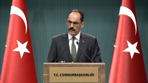 Haftalık olağan basın toplantısında konuşan Kalın, "Kudüs bizim onurumuzdur, Kudüs bizim ortak davamızdır, dün Sayın Cumhurbaşkanımızın da ifade ettiği gibi bizim kırmızı çizgimizdir" dedi. Kudüs'ün hem tarihi hem dini hem de hukuki statüsü itibariyle İsrail'in başkenti olarak ilan edilmesinin vahim bir hata olacağını, kararın uluslararası mevzuata aykırı olduğunu söyleyen Cumhurbaşkanlığı Sözcüsü İbrahim Kalın, İslam İşbirliği Teşkilatının bu gündemle toplanacağını açıkladı. Kalın, "Kudüs'ün statüsüne ve bölge barışına ilişkin hassasiyet arz eden bu gelişmeler karşısında İslam ülkeleri arasında ortak hareket etmeye ve koordinasyon sağlamaya dönük olarak Sayın Cumhurbaşkanımız, İslam İşbirliği Teşkilatını olağanüstü zirveye davet etmektedir. Önümüzdeki hafta, 13 Aralık Çarşamba günü İslam İşbirliği Teşkilatı Olağanüstü Liderler Zirvesi, İstanbul'da Sayın Cumhurbaşkanlığımızın ev sahipliğinde toplanacaktır" ifadelerini kullandı.
