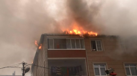 İstanbul'da 3 katlı binanın çatısında korkutan yangın