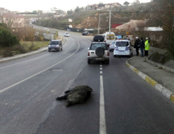İstanbul Beykoz'da yola inen domuza otomobil çarptı. Araçta maddi hasar oluşurken, domuz telef oldu.