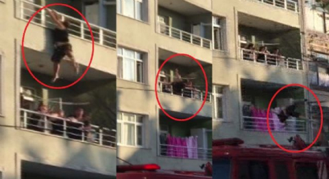KENDİNİ BALKON DEMİRLERİNDEN AŞAĞIYA SARKITTI