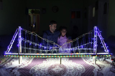Hakkari'nin Yüksekova ilçesinde yaşayan Aydın Güder, Boğaz Köprüsünü görmek isteyen kızını İstanbul'a götüremeyince köprünün ışıklı ve martı sesli maketini yaptı.