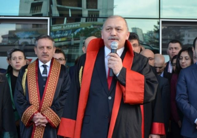 Trabzon Adliyesi'nde görev yapan hakim, savcı, adliye çalışanları ile avukatların hazır bulunduğu basın açıklamasında şehitler için dua edilirken, Trabzon Cumhuriyet Başsavcısı Mithat Kutanoğlu, bir basın açıklaması yaptı. Kutanoğlu konuşmasında acılarının büyük olduğunu belirterek "Türkiye'mizin göz bebeği olan İzmir'de, İzmir Adliyesi'ne teröristlerce yapılan hain saldırı sonucunda polis memuru arkadaşımız ve zabıt katibi arkadaşımız şehit olmuşlardır. Yine avukatlardan, personellerden ve vatandaşlardan yaralanan olmuştur. Şehitlerimize Allah'tan rahmet, yaralılara acil şifalar diliyoruz. Bu saldırı sadece adalet sarayına, adliye çalışanlarına yapılan bir saldırı değil, aynı zamanda toplumun adalet beklentisine ve milletimizin birlik ve beraberliğine yapılan bir saldırı olarak görmekteyiz. Türkiye Cumhuriyeti devleti devletin bekası anlamında uluslararası bir tehlike ile karşı karşıya maalesef herkesin bu uluslararası tehlikenin farkında olarak bu bilinçle bir bakış, bir duruş ortaya koyması ihtiyacı var. Acımız büyük ama tesellimiz de var. Çünkü polis kardeşimiz Fethi kardeşimiz sayesinde belki onlarca belki de yüzlerce insanın hayatı kurtuldu. Son mermisine kadar teröristlere müdahale ederek şehit düştü. Onun sayesinde oradaki bir çok meslektaşımız bir çok vatandaşımız şu an hayatta. İnşallah bundan sonra ülkemizin hiçbir yerinde bu tür saldırılar meydana gelmez ve barış içinde huzur içinde yaşama şansı buluruz. Temennim bu. Acımız büyük çok fazla bir şey söyleyemiyoruz. Bu vatan için bu ülke için bu topraklar için bu ülkenin insanları için daha çok çalışmalıyız, daha güzel şeyler yapmalıyız. Bizi sevmeyenlere bize zarar vermek isteyenlere en iyi cevabı çalışarak verelim. Adliye adına , Trabzon Barosu adına hep birlikte bu saldırıyı lanetliyoruz. Allah onların belasını versin" dedi.