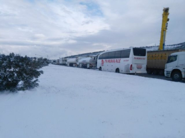 İzmir'in Menemen ilçesi ile Aliağa ilçesini bağlayan yol, kar yağışı ve buzlanma nedeniyle trafiğe kapatılırken yaklaşık 5 kilometrelik kuyruk oluştu. İzmir genelinde 2 gündür süren sağanak yağış, gece yarısından itibaren yüksek kesimlerde ve kuzey ilçelerinde kar yağışına döndü. Menemen, Aliağa, Bergama ve Dikili ilçeleri güne karla uyandı. İzmir-Çanakkale yolu olan Menemen ilçesi ile Aliağa ilçesi arasındaki karayolu, yoğun kar yağışı nedeni ve buzlanma nedeniyle Yeni Foça kavşağında araç trafiğine durduruldu. Yolun kapanması ile araç kuyruğu yaklaşık 5 kilometre oldu. Karayollarına bağlı ekiplerin, yolu açmak ve buzlanmayı önlemek için çalışmalarını sürdürdüğü öğrenildi. (Nimet Ergün / İHA)