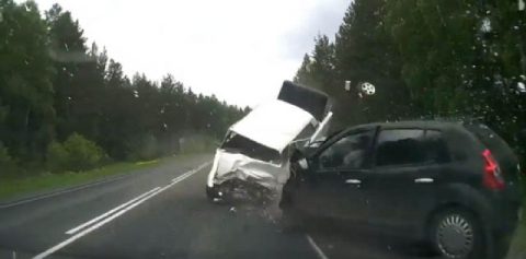 Rusya'da ehliyetsiz birinin kullandığı araç kontrolden çıkarak ters şeride girdi ve kendi şeridinde seyreden otomobil ile kafa kafaya çarpıştı. Çarpmanın etkisiyle iki otomobil de adeta hurdaya döndü. Feci kazada ters şeride giren aracın sürücüsü hayatını kaybetti.