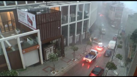 İstanbul'da beklenen yağmur akşam saatlerinde dolu ve fırtına şeklinde etkili oldu. Yoğun yağışla birlikte caddeler göle dönerken, dolu yağışı nedeniyle araçlar zarar gördü. Fırtına nedeniyle ağaçlar devrildi, binalardan parçalar ve eşyalar uçtu. Meteoroloji Genel Müdürlüğünün uyarılarının ardından İstanbul'da akşam saatlerinde etkili olan şiddetli yağışla birlikte birçok ana caddeyi ve yolu sular bastı. Kağıthane'de meydana gelen dolu, yağışı ve fırtına sebebiyle araçlar ve insanlar yollarda ilerlemekte zorlandı. Fırtına sebebiyle bazı binalardan parçalar koptu, eşyalar ise yollara uçtu. (Doğan Can Cesur /İHA)