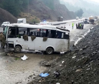 Kahramanmaraş'ta askeri aracın karıştığı trafik kazasında yaralı sayısı 18'e çıktı. Alınan bilgiye göre, Kahramanmaraş 2. Zırhlı Tugay Komutanlığına ait Uzman Çavuş Bilal Topal'ın kullandığı 46 HG 831 plakalı midibüs, Kayseri yolu üzerinden il merkezi istikametine seyir halindeyken Beşoğluk mevkiinde havanın yağışlı yolun kaygan olması nedeniyle sürücünün direksiyon hakimiyetini kaybetmesi sonucu yan yattı. Kazada midibüste bulunan 1 astsubay, 2 uzman çavuş, 13 er olmak üzere 16 askeri personel yaralandı. Kaza bölgesinde aynı istikamette seyir halinde olan otomobil ve kamyonetin çarpışması sonucu da 2 kişi yaralandı. Olay yerine sevk edilen sağlık görevlilerince kentteki çeşitli hastanelere kaldırılan yaralıların sağlık durumunun iyi olduğu öğrenildi. (Muhammet Özer /İHA)