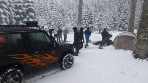İstanbul ve Sakarya'dan gelen 12 kişilik grup Torkul Göletinde kamp yaparken, gece aniden bastıran kar nedeniyle mahsur kaldılar.