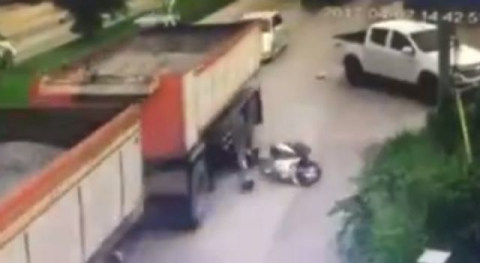 Motosikletten düşen sürücünün kafasını kamyon ezdi. Akan trafikte seyir halinde olan bir motosiklet sürücüsü, yolun soluna dönen kamyonetin kasasına çarptı. Çarpmanın etkisiyle kontrolden çıkan motosiklet devrildi. Bu sırada arkadan gelen bir kamyon kaza yapan motosikletlinin kafasını ezdi. Feci kaza güvenlik kamerasına da anbean yansıdı.